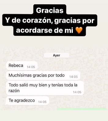 Muchísimas gracias por todo, todo salió muy bien y tenías toda la razón.